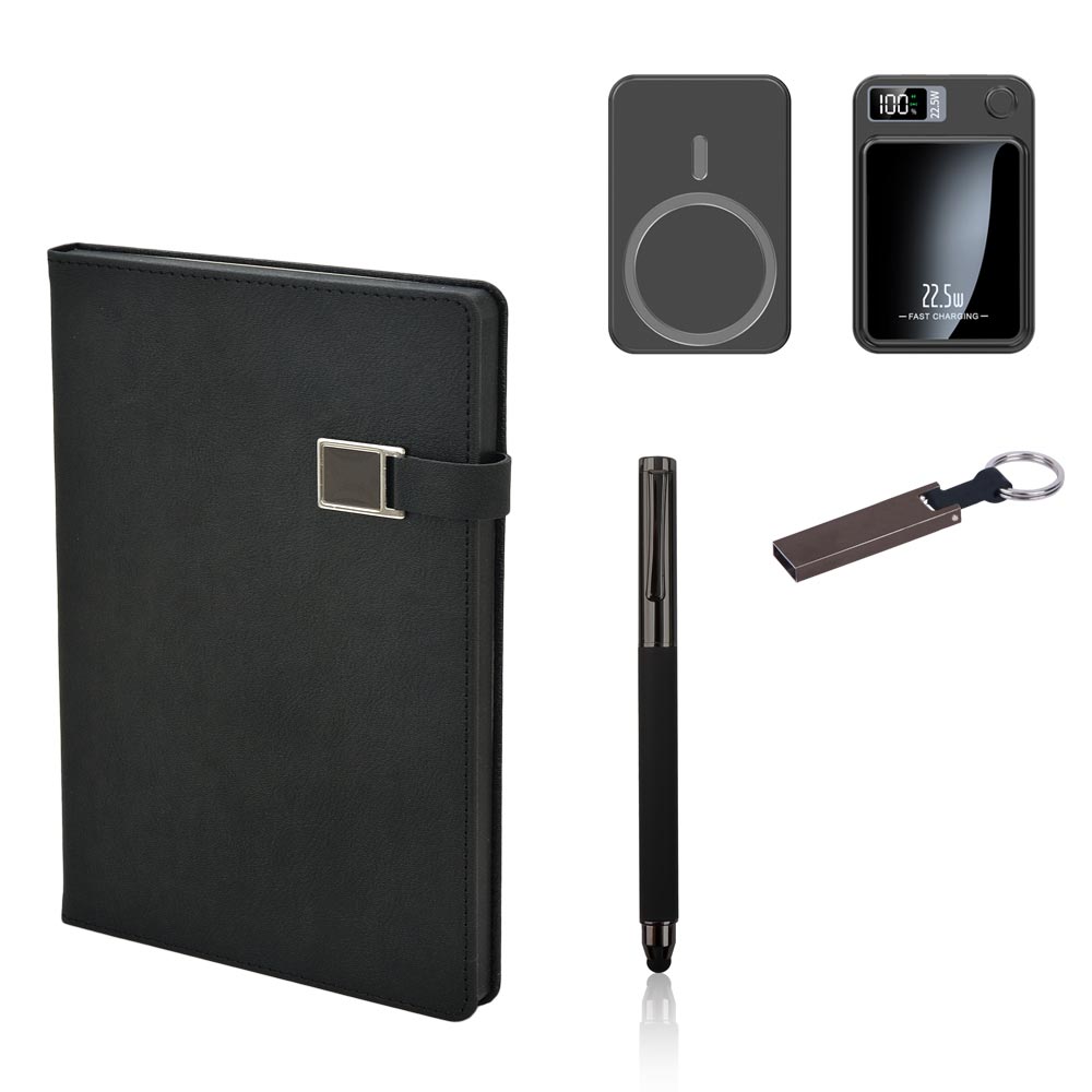 *13×21 cm Defter *5.000 mAh Magsafe Hızlı Şarj Powerbank *Roller Kalem *32 GB USB Bellek *Baskı Serigrafi – UV